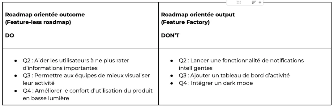 Une roadmap centrée sur les livraisons et non pas sur les problèmes des utilisateurs