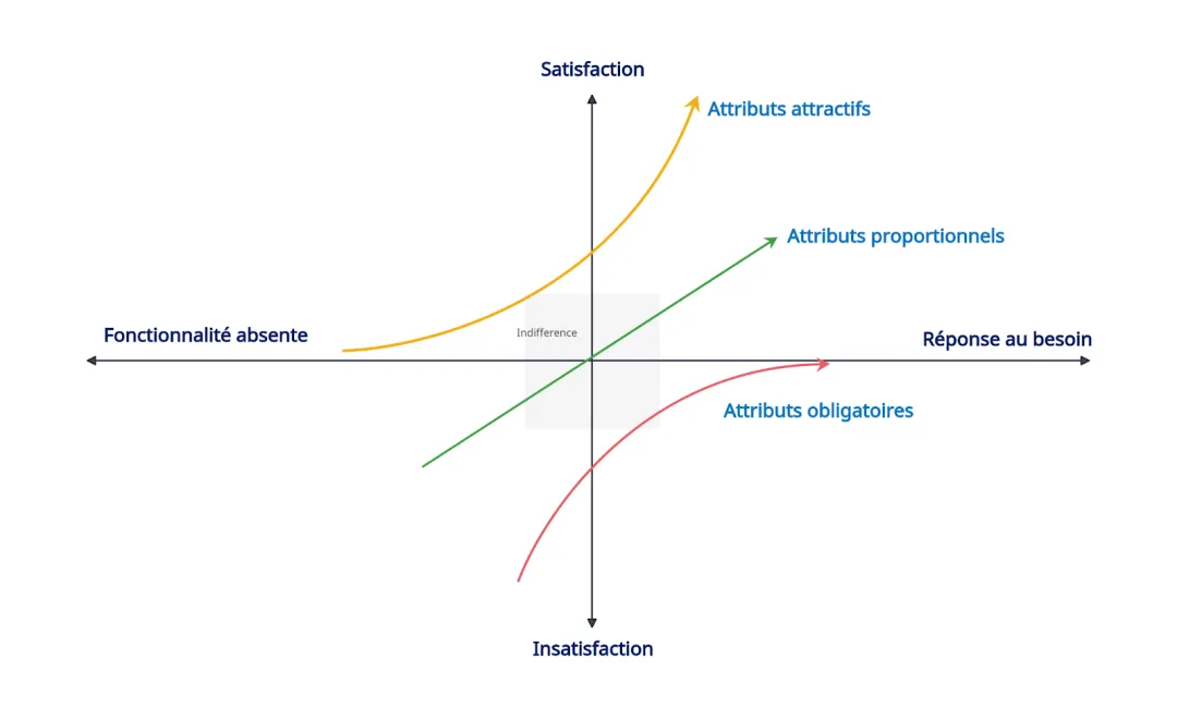 Explicitement demandées. Plus on y répond, plus l’utilisateur est satisfait ; moins on y répond, plus il est insatisfait. - Les fonctionnalités basiques (ou obligatoires)